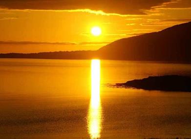 Seen from Elgsnes is midnight sun especially great since it reflects in the sea across the Top Strait. On fine evenings midnattsol one may consider the sun and the colors of the sky and sea.