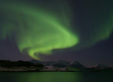 Elgsnes is very open and with little light pollution is excellent for the hunting orca products aurora observations in the dark season.