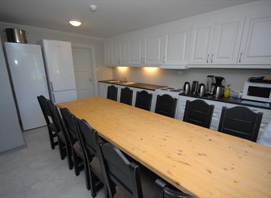 Storsalen Norman farm is furnished as a meeting room for up to 24 people with the necessary audiovisual aids. The room can also be used for gatherings of up to 24 diners.