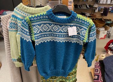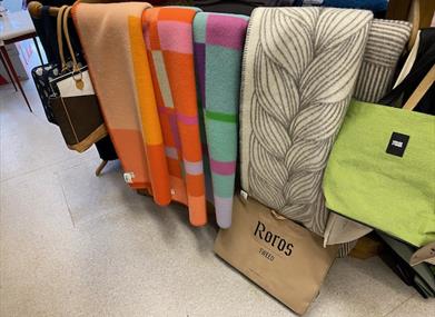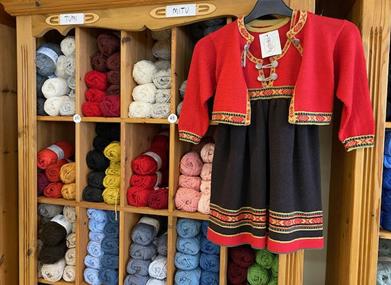 In our store you will also find quality wool blankets from Røros Tweed, jackets and tops from the Norwegian produces Oleana, traditional Norwegian "kofte" from Dale of Norway, fabrics for quilting and much more.