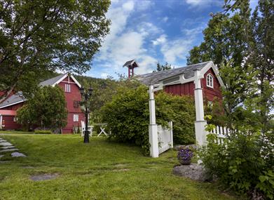 Old trading post and guesthouse dating back to the 16th century. The property has been in the same family for 10 generations, since 1673. The gallery in the former barn is venue for an exhibition by the Harr siblings. Sale of crafts from local producers on Låvebrua. Beautiful setting for lunch, dinner, meetings, weddings and other events, either in the main house from 1750 or the converted cow-shed from 1899. Accommodation in the 16th century farm storehouse. There is a 9-hole golfcourse on the property.