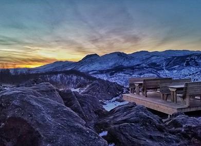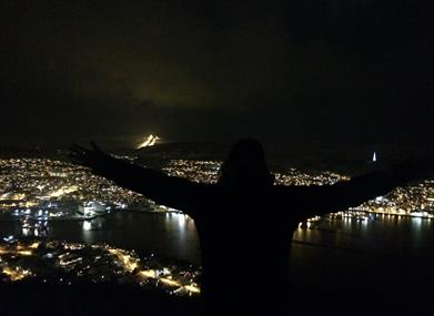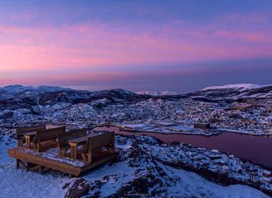 If you want to go for an easy hike with spectacular views of the city and its surroundings - Gangsåstoppen is the place to go! There are several starting points on Gangsås or Stangnes, but the easiest route starts at Åsby. Drive to the Shell gas station in Kanebogen (3.5 km south of Harstad center) and then 200 meters north to Gamle Stangnesvei . Then there is upward marked track toward the parking lot. The view is 360 degrees from the top, and here it is also a country shelter free for everyone to use! Have a nice hike!