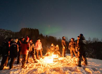 Just in case The Tricky Lady is feeling shy on a particular evening, stay entertained in the winter camp with fun activities, such as snowshoeing, miniskis and sledging! Or sit around the campfire, and listen to the myths and legends surrounding the Northern Lights – how did people from the past react to the colorful lights in the heavens above? And before you know it, Lady Aurora might just show herself after all