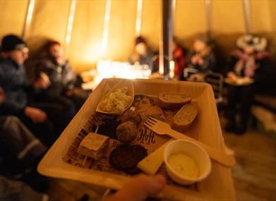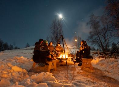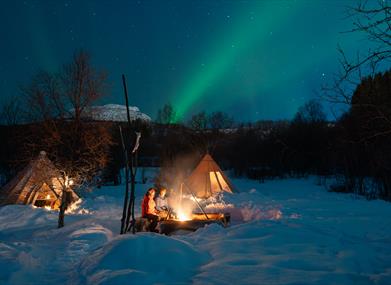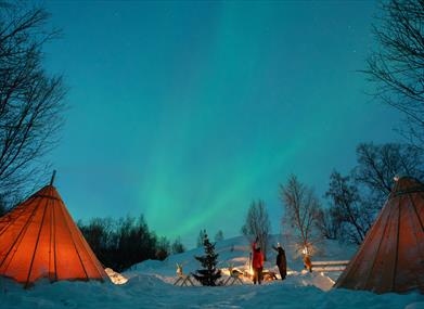 Experience the enchanting beauty of winter in our traditional lavvu camp, as the dancing Northern Lights fill the sky. Stay warm by the fire and relax inside a cozy tent, as we wait for the stunning Aurora to show.