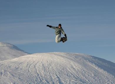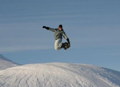 Snowboard and twin tip skiing with 2 big jumps, humps and rails.