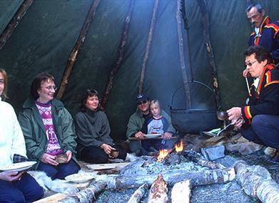 Restored sami settlement in very beautiful surroundings, abandoned in 1958. Accommodation in sami hut or tent. Sami food. Activities such as trout fishing, canoeing, bow and arrow, lassoing, nature trail, berry and mushroom picking, exploring a cave and old sacrificial site. Culture information, winter activities, tailor-made events for conferences, outings, corporations and other groups. Welcome to a unique adventure with sami culture and traditions! Season: All year by appointment.