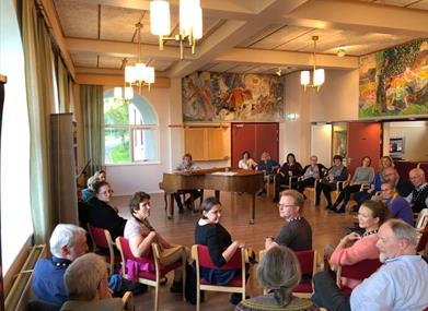 Stafettpinnen er levert til slagverker Eivind Siljeholm, som ønsker velkommen til Kammerfest: